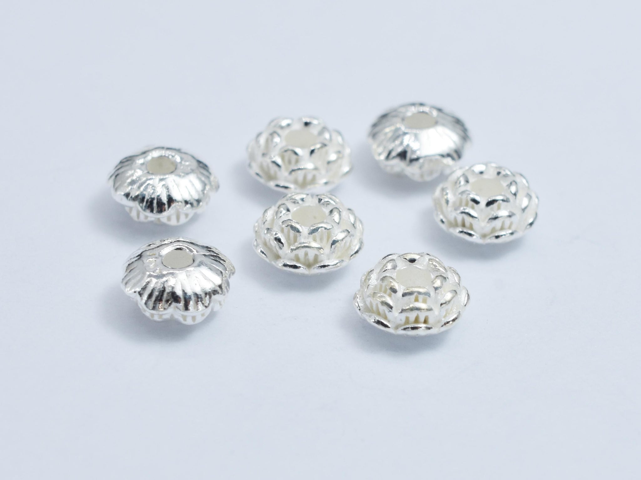4pcs 925 Sterling Silver Beads, 6mm Flower