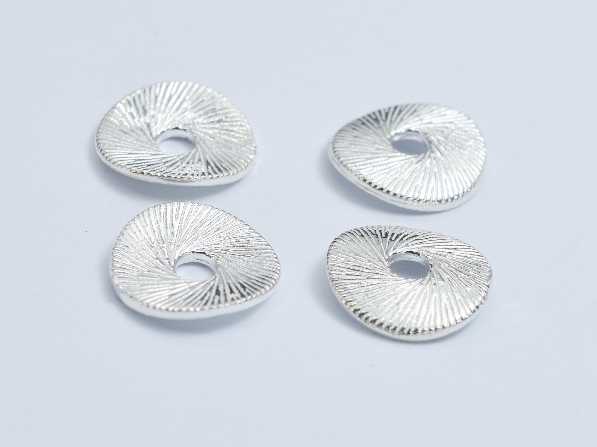 2pcs 925 Sterling Silver Beads, 9.7mm Wavy Coin Beads