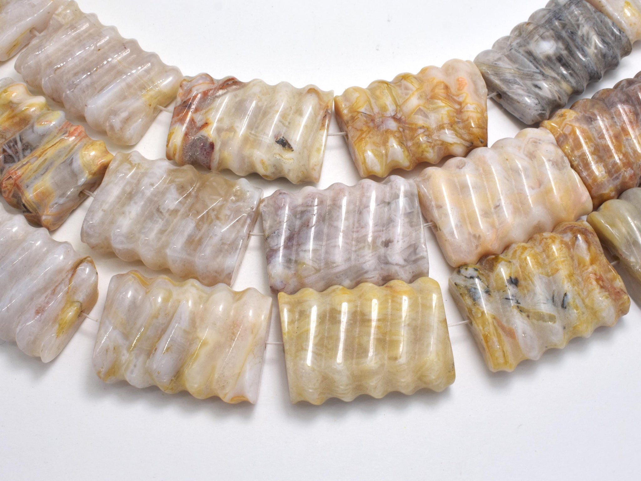 Bamboo Leaf Agate, 25x35mm Carved Rectangle