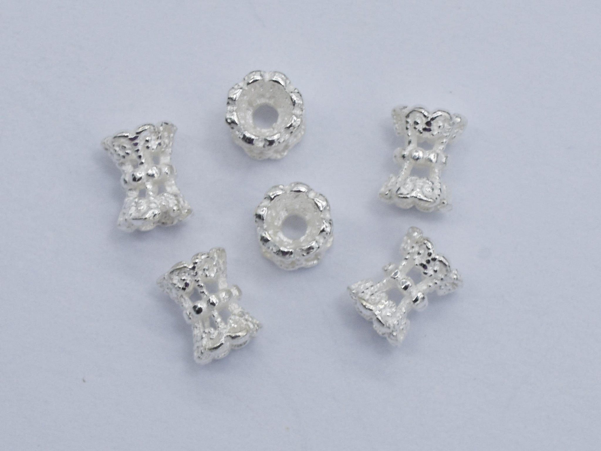10pcs 925 Sterling Silver Bead Caps, 4mm Double Bead Caps, Height 5mm